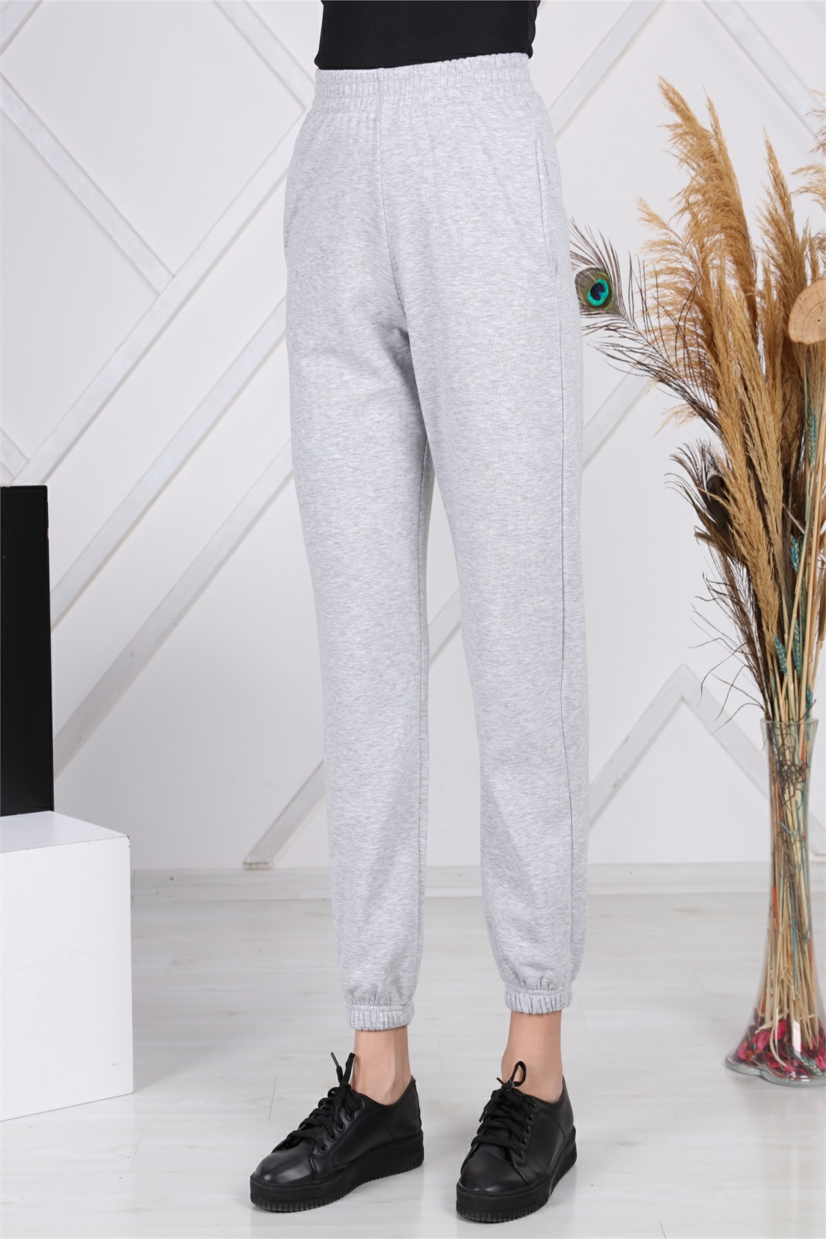 Kadın Yazlık Cepli Düz Renk Gri Jogger Eşofman Altı